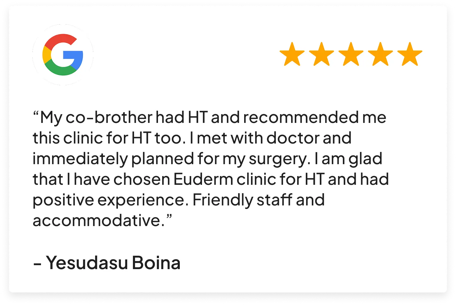 Not all clinics follow the same standards. Many cut corners, rely on technicians, or compromise on safety. At Euderm Clinic, we set a higher benchmark in hair restoration.